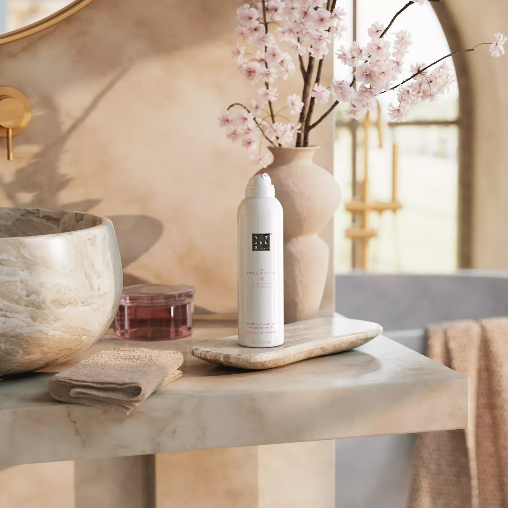 Geef je huid de ervaring van een nieuw begin met The Ritual of Sakura doucheschuim. Met de vernieuwende geur van kersenbloesem en rijstmelk. De unieke technologie transformeert de gel tot zijdezacht reinigingsschuim. De geur opent met zachte melkachtige ondertonen en frisse, sprankelende groene noten. Het gaat langzaam over in een harmonie van zoete kersen en betoverende bloemige hints. Combineer met de rijke luxe bodycrème uit dezelfde collectie en vier elke dag als een nieuw begin. 91% natuurlijke ingrediënten.
